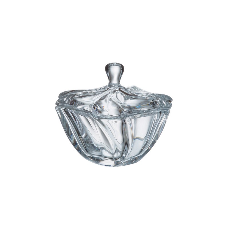 Dóza z kvalitného českého skla. Vhodná na každodenné použitie, rovnako aj na špeciálne príležitosti alebo ako praktický a nadčasový darček. Balené v elegantnom tmavomodrom kartóne.