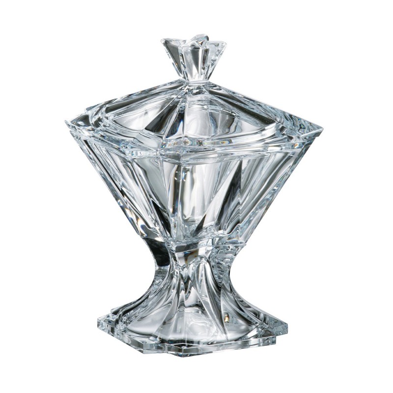Dóza z kvalitného českého skla. Vhodná na každodenné použitie, rovnako aj na špeciálne príležitosti alebo ako praktický a nadčasový darček. Balené v elegantnom tmavomodrom kartóne.