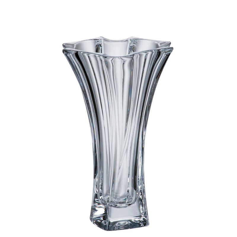 Váza z kvalitného českého skla. Vhodná na každodenné použitie, rovnako aj na špeciálne príležitosti alebo ako praktický a nadčasový darček. Balené v elegantnom tmavomodrom kartóne.