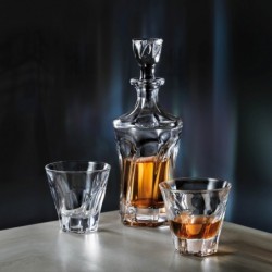 Fľaša z kvalitného českého skla. Vhodná na každodenné použitie, rovnako aj na špeciálne príležitosti alebo ako praktický a nadčasový darček. Balené v elegantnom tmavomodrom kartóne.