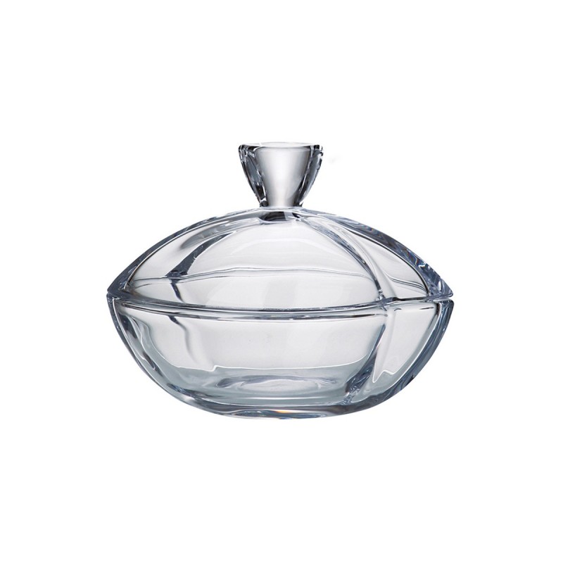 Dóza z kvalitného českého skla. Vhodná na každodenné použitie, rovnako aj na špeciálne príležitosti alebo ako praktický a nadčasový darček. Balené v elegantnom tmavomodrom kartóne.