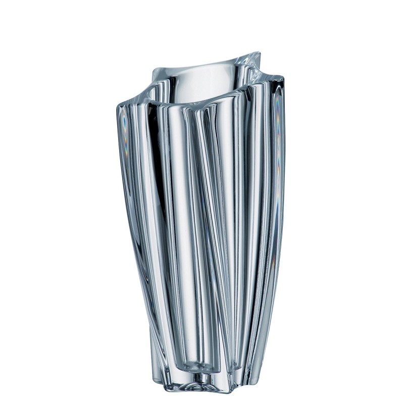 Váza z kvalitného českého skla. Vhodná na každodenné použitie, rovnako aj na špeciálne príležitosti alebo ako praktický a nadčasový darček. Balené v elegantnom tmavomodrom kartóne.