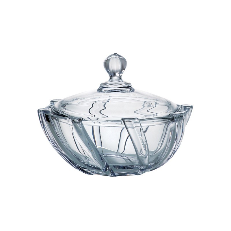 Dóza z kvalitného českého skla. Vhodná na každodenné použitie, rovnako aj na špeciálne príležitosti alebo ako praktický a nadčasový darček. Balené v elegantnom tmavomodrom kartóne.