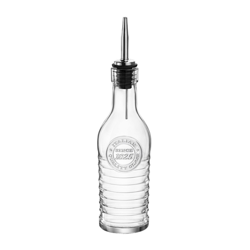 Fľaša Officina1825 na olej alebo ocot s nerezovým nadstavcom a gumovým tesnením. V nadčasovom retro industriálnom štýle. Spája v sebe trendový štýl a historickú kvalitu výrobkov Bormioli Rocco už od roku 1825.