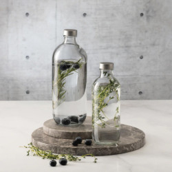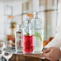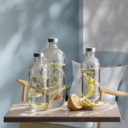 Sklenená fľaša s otočným uzáverom. Fľaša Iconic vyniká svojou praktickosťou a sofistikovanou estetikou. Jej priehľadná štruktúra krásne zvýrazní farbu tekutín; ľahko sa kombinuje s ostatným riadom. Fľaša je ideálna na servírovanie nápojov hosťom, ako aj na každodennú konzumáciu vody. Svojej všednej rutine dodáte nádych elegancie.