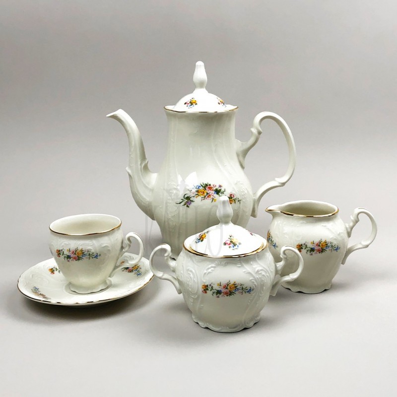 Kávová súprava 17 dielna BERNADOTTE IVORY FAREBNÉ KVETY+ZL (slonová kosť)