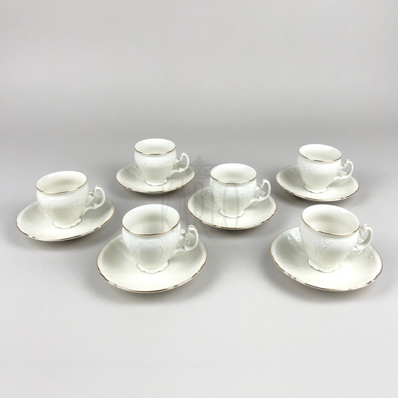 Šálka s podšálkou 90 ml BERNADOTTE IVORY+ZLATÁ LINKA (slonová kosť) 6 kusov