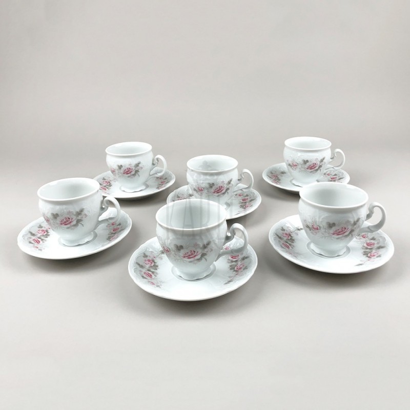 Šálka s podšálkou 170 ml BERNADOTTE RUŽOVO-SIVÉ RUŽE 6 kusov