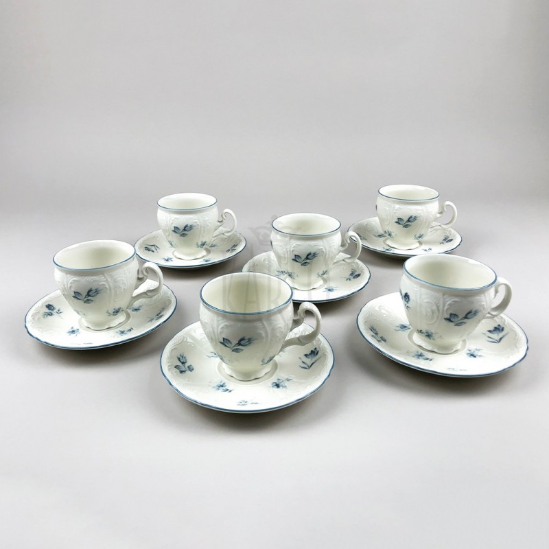 Šálka s podšálkou 170 ml BERNADOTTE IVORY MODRÝ KVET+ML (slonová kosť) 6 kusov
