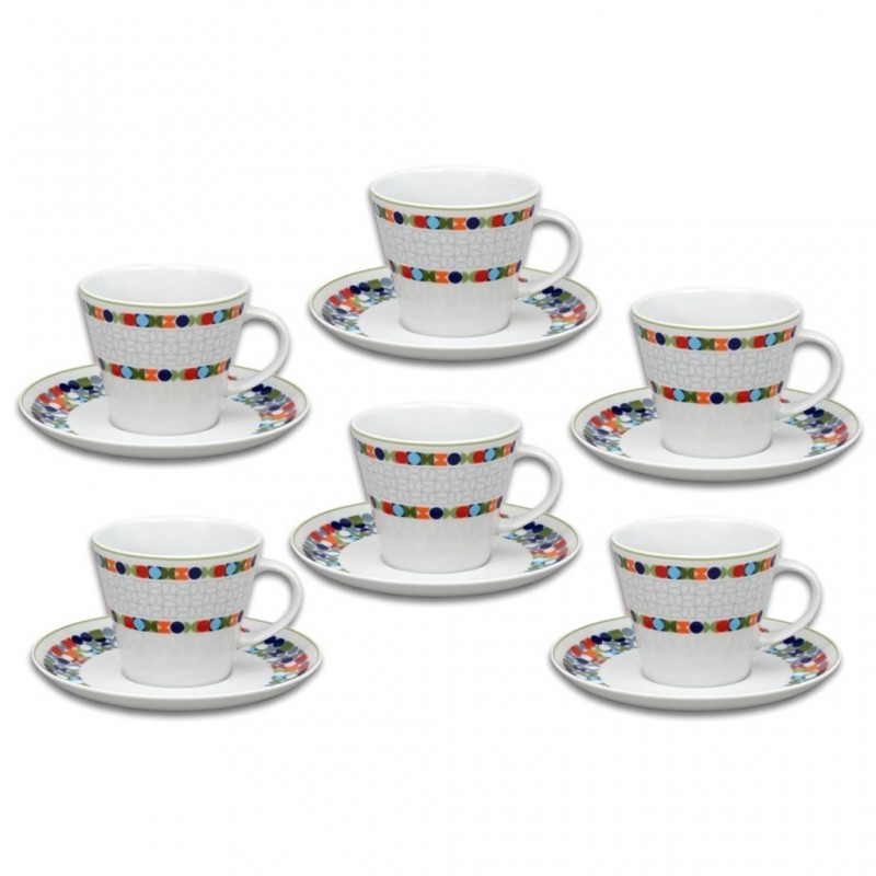 Šálka s podšálkou 200 ml TOM FAREBNÉ TVARY 6 kusov