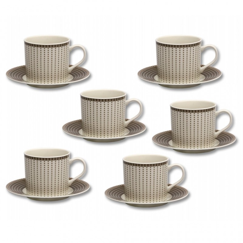Šálka s podšálkou 250 ml CAIRO IVORY HNEDÉ KRUHY (slonová kosť) 6 kusov