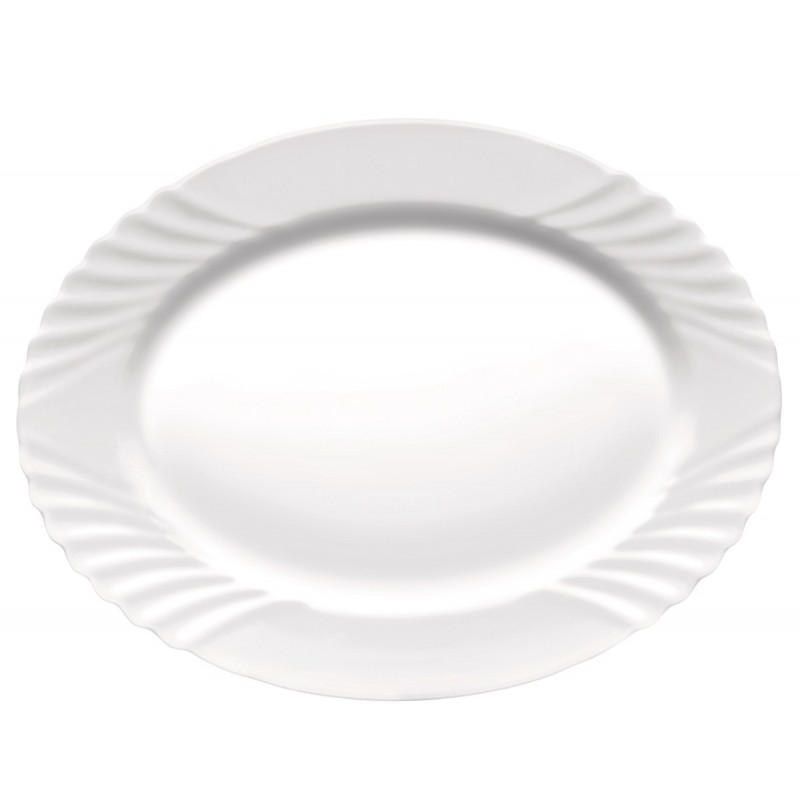 Oválny tanier z tvrdeného opálového skla z obľúbenej a nadčasovej série Ebro. Opálové sklo (100% sklo) sa vyznačuje výraznou bielou farbou, ktorá je dosiahnutá pridaním fluóru. Je ľahké, hygienické a odolné voči nasiaknutiu. Opálové sklo je ošetrené technologickým procesom tvrdenia, následkom ktorého sú tieto výrobky obzvlášť odolné voči nárazom a teplotným rozdielom a sú ideálne pre dlhodobé a bezpečné užívanie. Obzvlášť vhodné do prostredia s vysokou intenzitou použitia. Všetky výrobky Ebro sú vhodné do umývačky riadu a mikrovlnnej rúry.