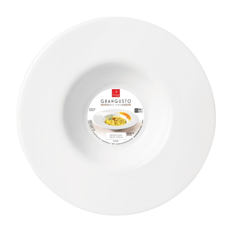 Tanier z tvrdeného opálového skla. Opálové sklo (100% sklo) sa vyznačuje výraznou bielou farbou, ktorá je dosiahnutá pridaním fluóru. Je ľahké, hygienické a odolné voči nasiaknutiu. Opálové sklo je ošetrené technologickým procesom tvrdenia, následkom ktorého sú tieto výrobky obzvlášť odolné voči nárazom a teplotným rozdielom a sú ideálne pre dlhodobé a bezpečné užívanie. Obzvlášť vhodné do prostredia s vysokou intenzitou použitia. Vhodné do umývačky riadu a mikrovlnnej rúry.