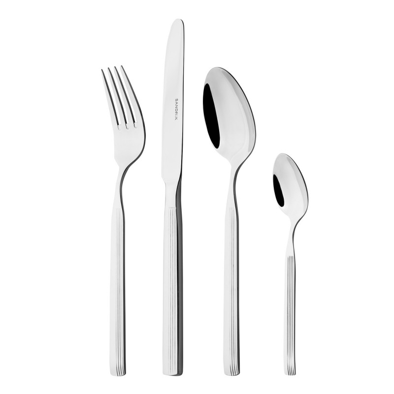 Súprava príborov z plne recyklovateľnej chrómovej ocele.