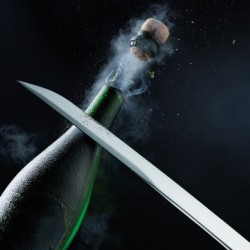 Set na sabráž so šabľou. Sabráž alebo aj sabrage je špeciálna technika na otváranie fliaš šampanského alebo sektu. Tento zaujímavý a neobyčajný spôsob sa využíva najmä pri slávnostných príležitostiach. Pri akte dochádza k useknutiu fľaše šabľou na konci hrdla. Fľaša sektu nie je súčasťou balenia. Balené v okrasnom darčekovom kartóne.